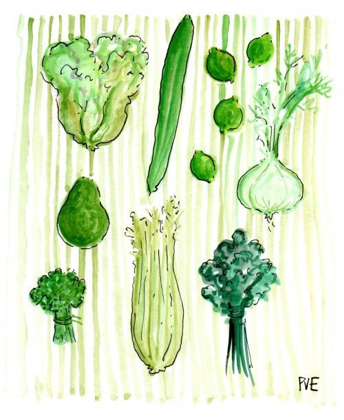 Eating green has many benefits. Try to eat something green at every meal or replace one meal with a plate of fresh green veggies. A green salad or a fresh steamed greens. Greens are rich in minerals, full of fiber and great for your digestion, your skin and regularity. Sliced fennel in a salad, chopped celery, braised broccoli, lettuce, cucumbers, avocado and blanched asparagus arranged on a plate look so pretty. Are you eating your greens every day?