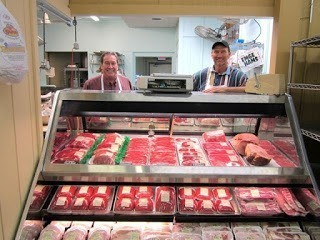 We remember fondly our Barret Avenue location which housed not only Paul's Fruit Market but also Lawrence's Meat Market. Phil, my brother and company President, has long wanted to have a butcher shop again. Well, now we do. We have hired Burger's butchers and have opened a meat counter at our Shelbyville Road location shown above. Ernie, from Burger's, is on the left and Phil is on the right. Stop in and shop.
