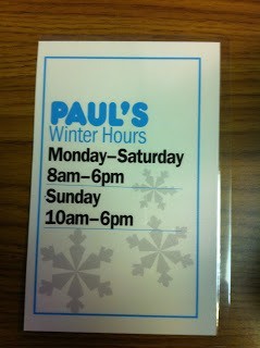 New this year, our stores will be open on Sundays from 10a-6p. Don't know about you, but that makes me very happy. No matter how I try, I forget something so this is handy.