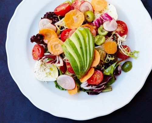 Summer Salad inspiration is in full force. Everywhere I look, there are such tantalizing images of pretty salads. One such salad spotted at the chic site Aerin, was the New York milanese-stye coffee shop, Saint Ambroeus Centocolori Salad of which she is a devotee. Italian Frizee, radicchio, red lettuce, cherry tomoatoes, olives, avocado, carrot and fresh buffalo mozzarella. Dress with a home made dressing of dijon mustard, white vinegar, extra virgin olive oil and sea salt. Serve with a tall glass of ice tea and enjoy! Inspiration is indeed all around us.